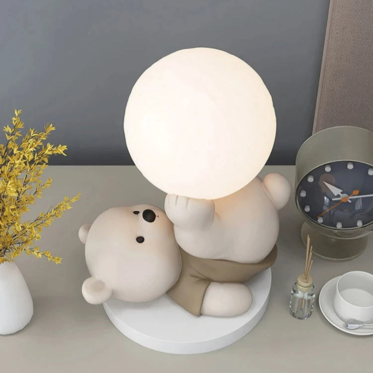 Detalhes Material: Urso em resina e globo em acrílico Luminária sem fio, recarregável Dimensões: 25cm(altura)x16cm(diâmetro)...