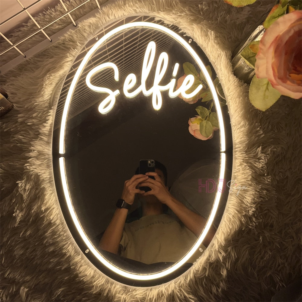 Espelho com led neon Selfie Pink - 40x33.5cm
