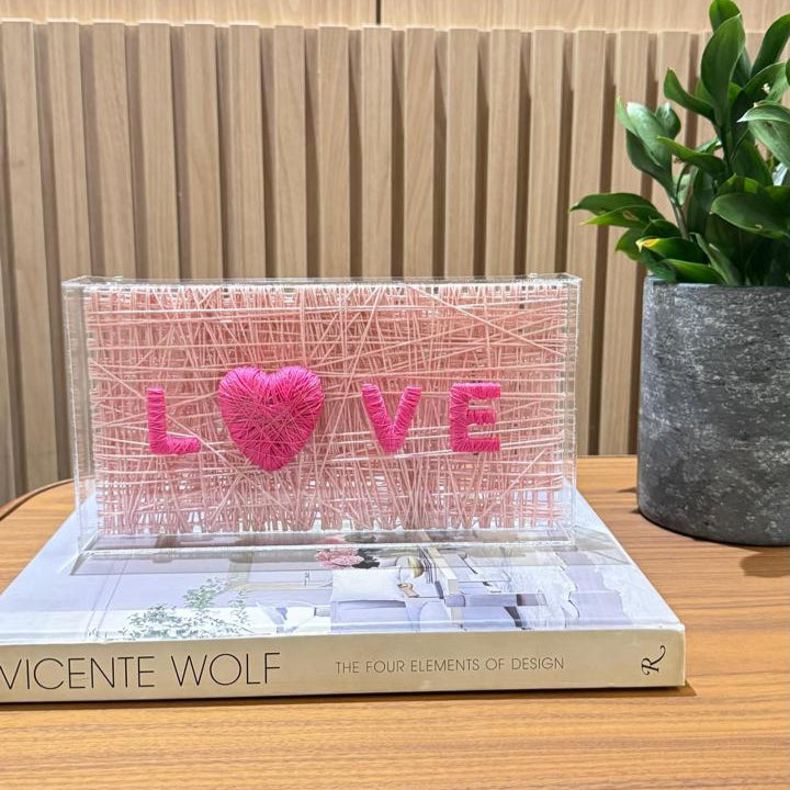Escultura LOVE Entrelaçado na caixa de acrílico
