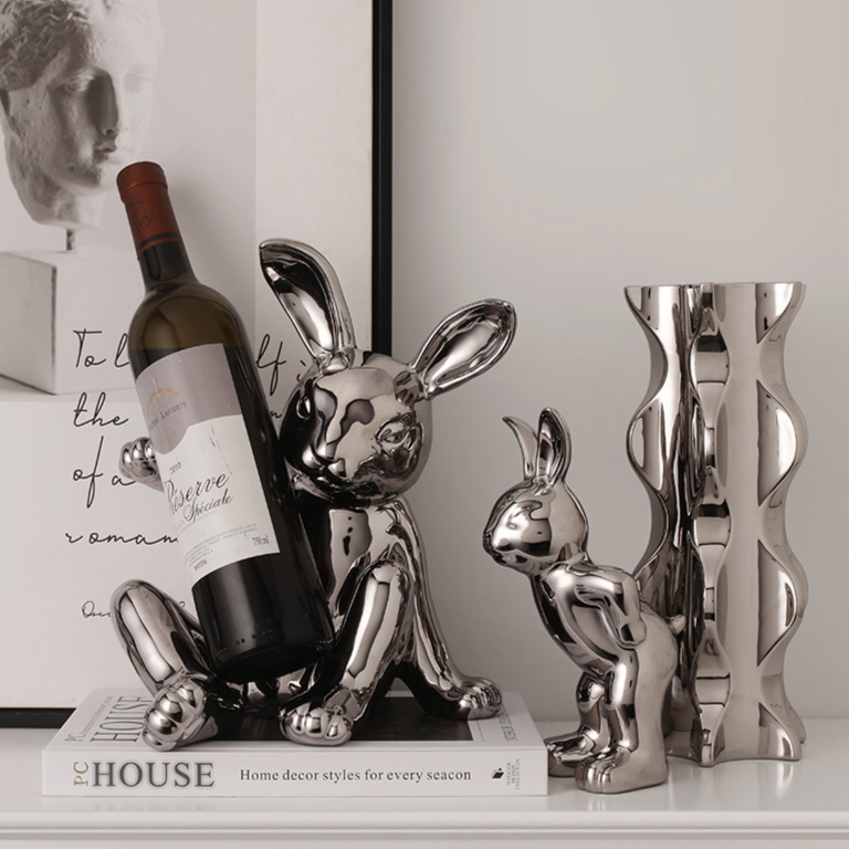 Porta Vinho & Porta Taça Bunny - em cerâmica cromada