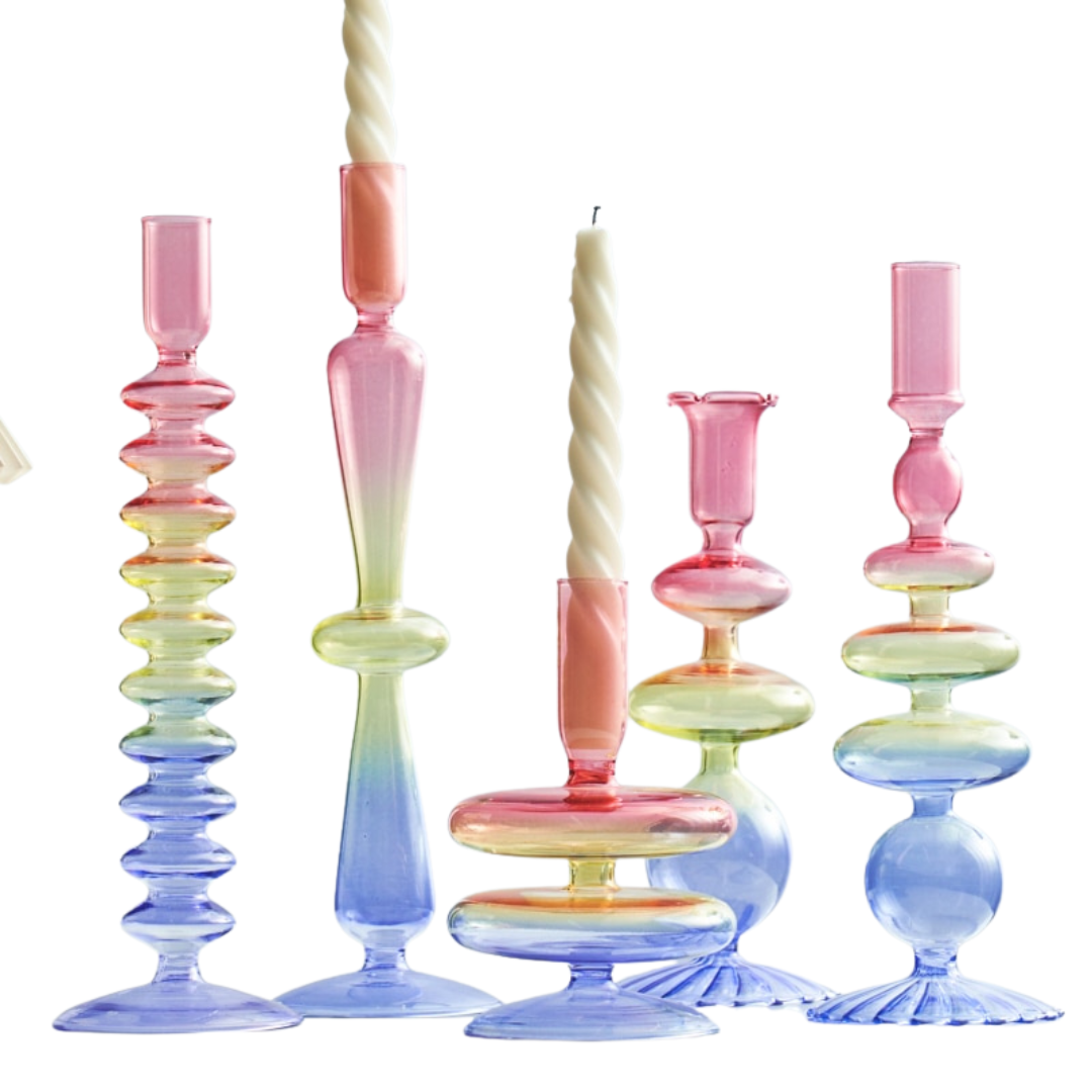 Os "Castiçais em vidro Degradê" são robustos e cheios de charme, proporcionando a delicadeza e...