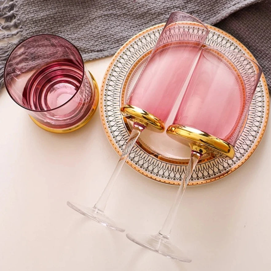 Detalhes Material: Vidro e borda com filete dourado Opção de Jogo 2pcs ou Jogo 6pcs...