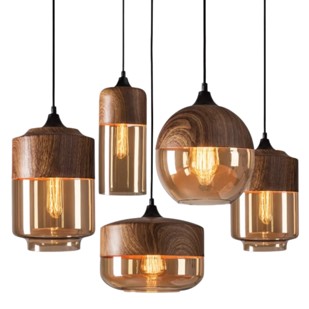 Pendentes Dalton Amadeirado - vidro ambar