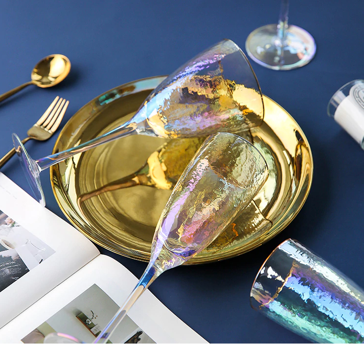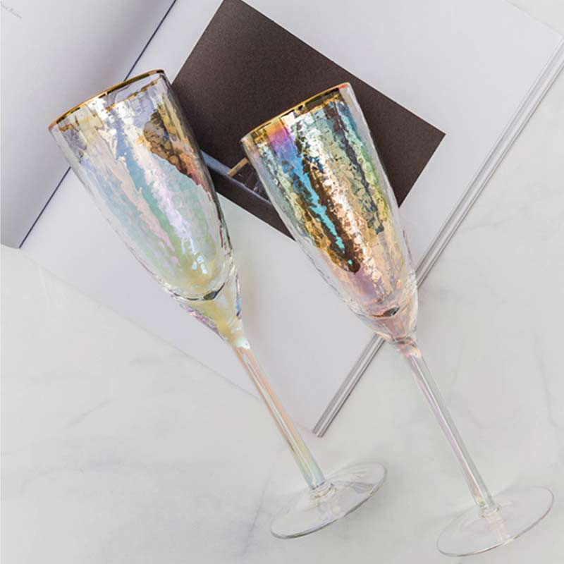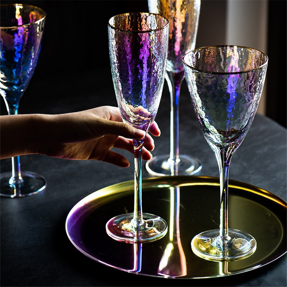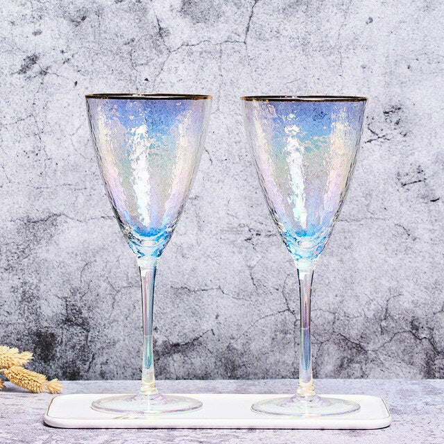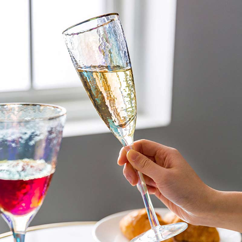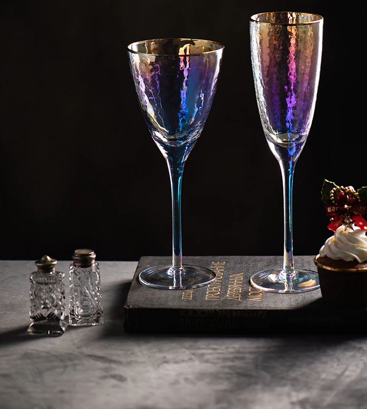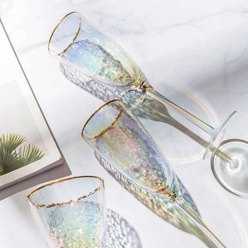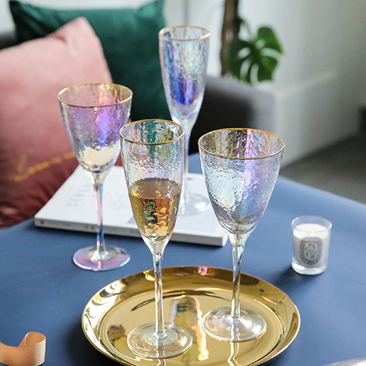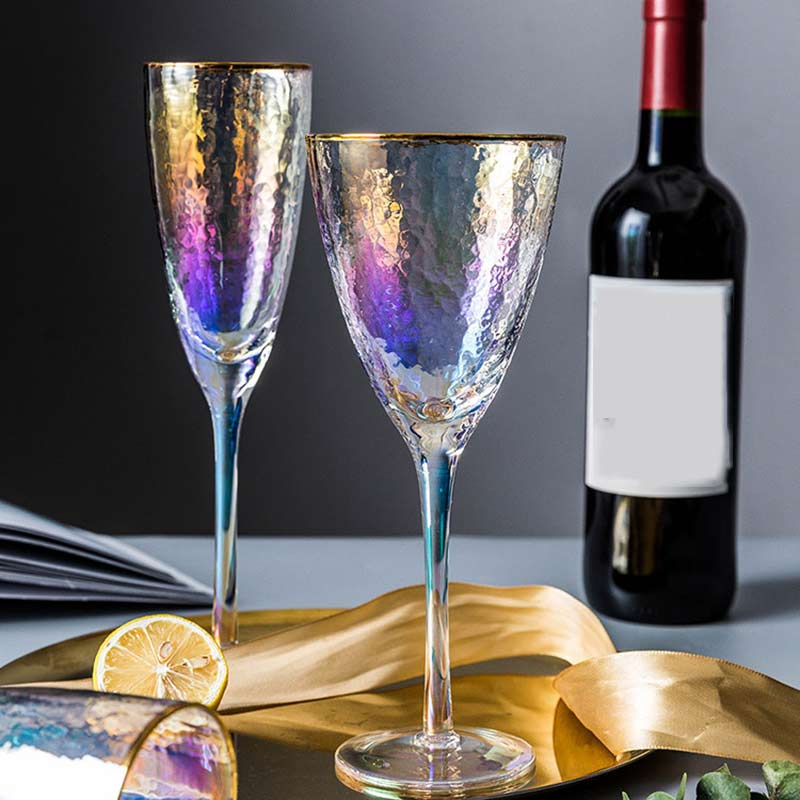 Perfeição em formato de taça. Feitas em vidro martelado furtacor e detalhe em dourado na borda, as "Taças Gold Rainbow" vão deixar qualquer momento ainda mais especial!