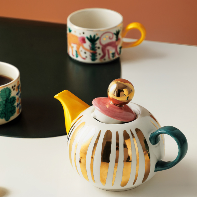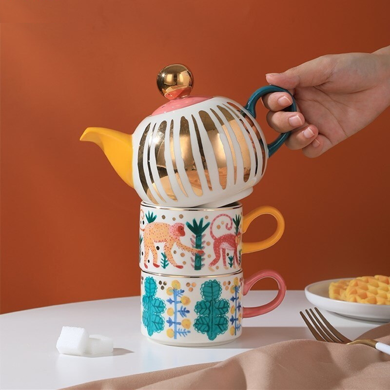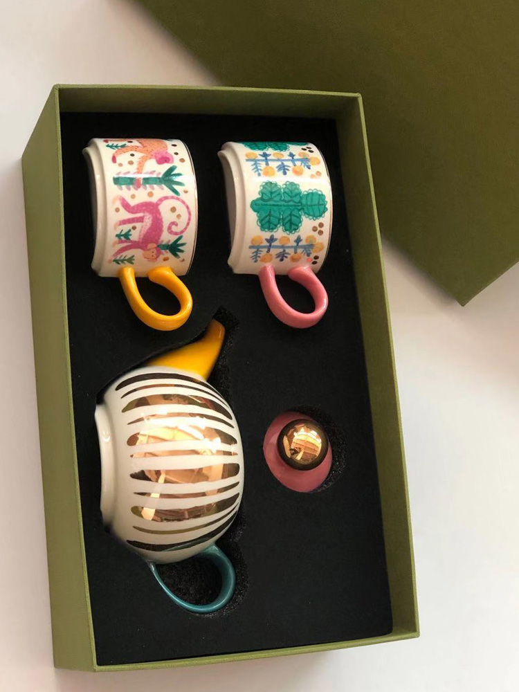 Um mundo de elegância, cores e arte para surpreender e tornar sua mesa posta única e inconfundível. O "Jogo Fantasyland" é feito em cerâmica artesanal cuidadosamente pintada a mão e com detalhes em tinta ouro, inclui 3 peças (2 xícaras + 1 Bule) e vai transformar cada detalhe em um momento cheio de sofisticação, beleza e exclusividade!