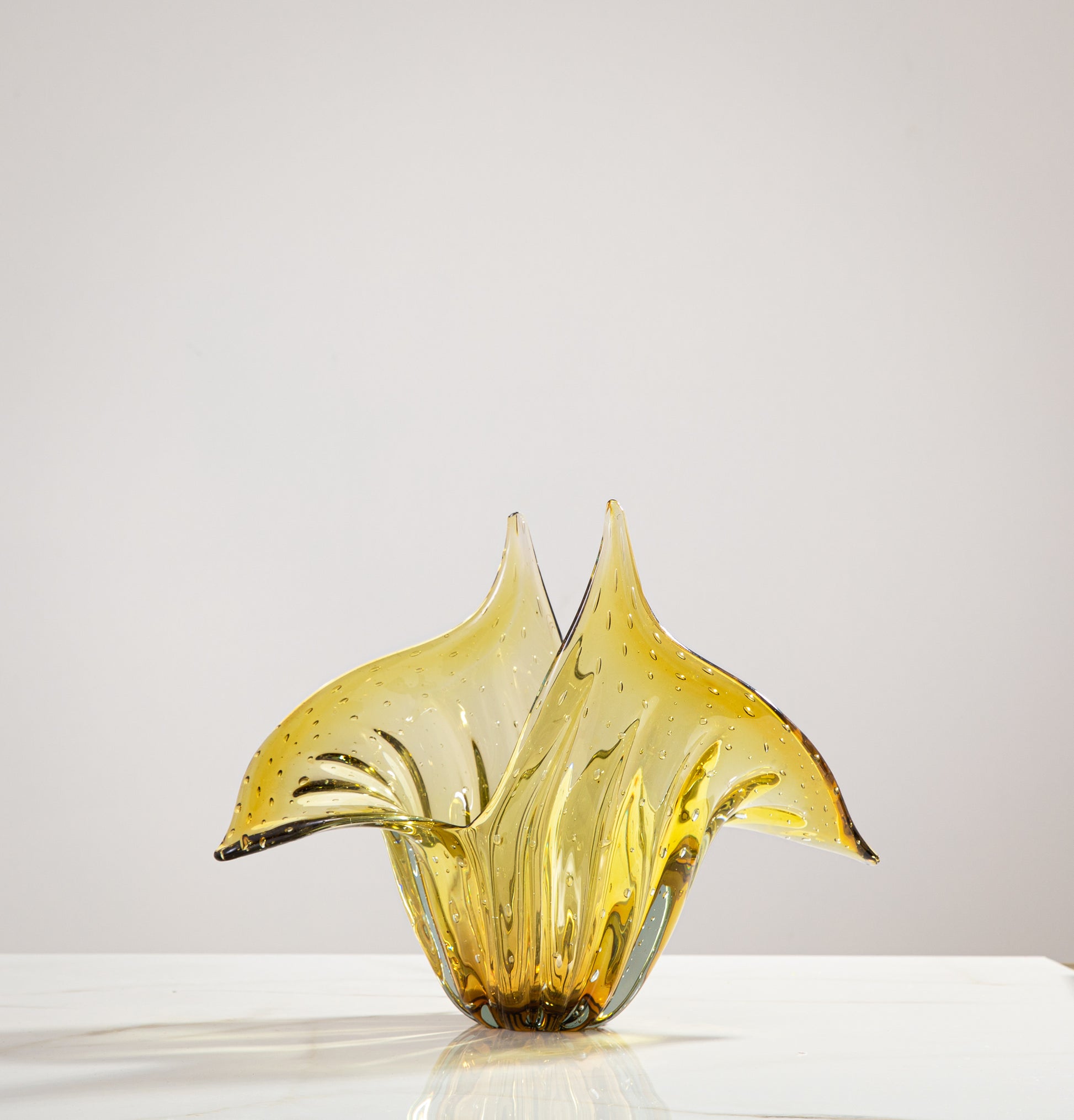 O "Vaso em Murano Wings" traz um modelo marcanete e chieo de estilo que aliado a toda elegância e sofisticação do cristal em Murano no tom ãmbar não vai passar despercebido. Com dois recortes, cria movimento e deixa a peça cheia de estilo e versatilidade para qualquer ambiente!