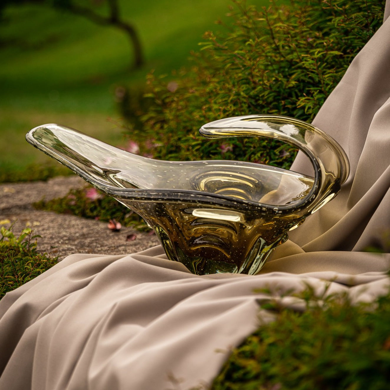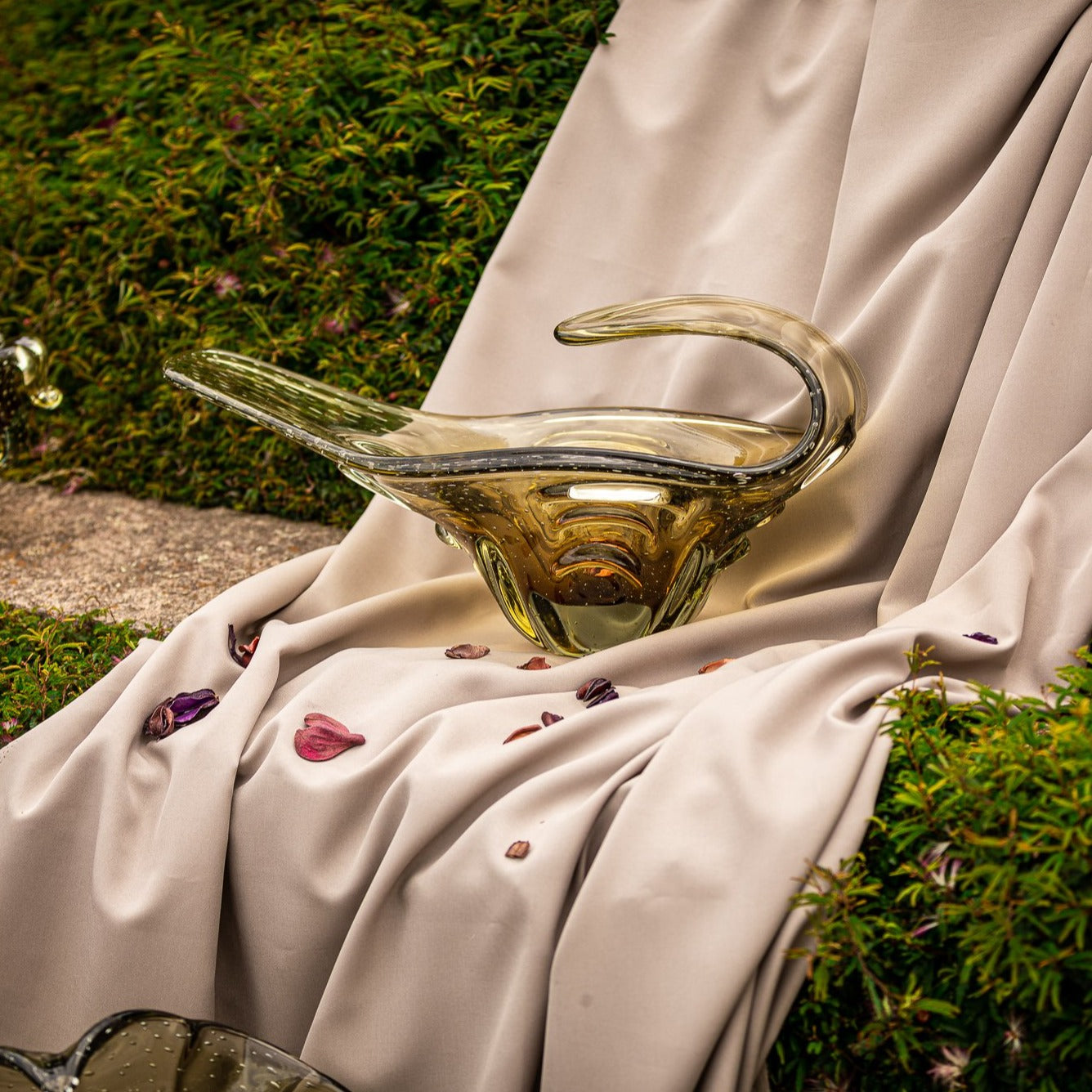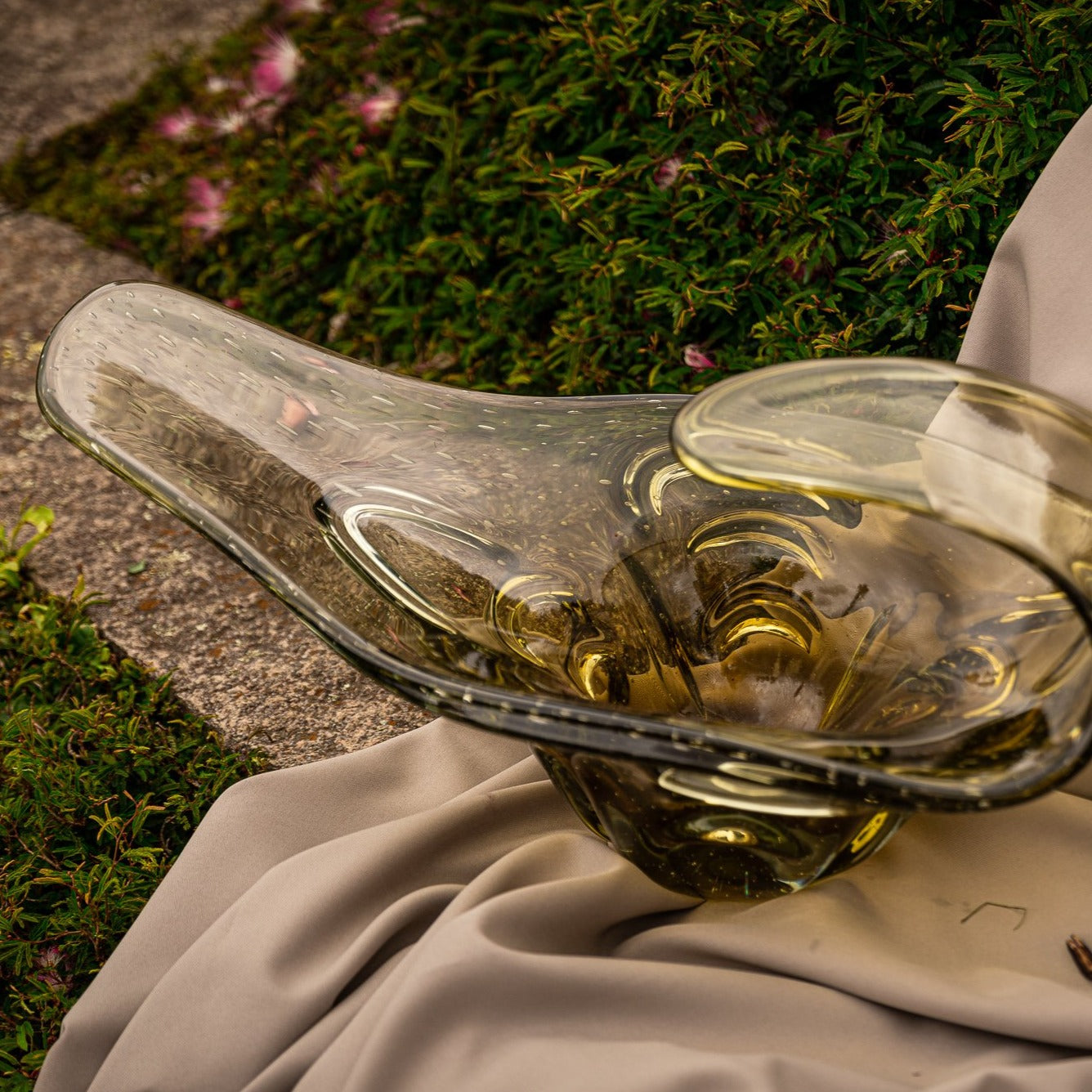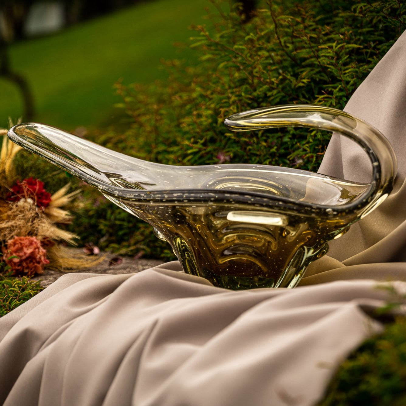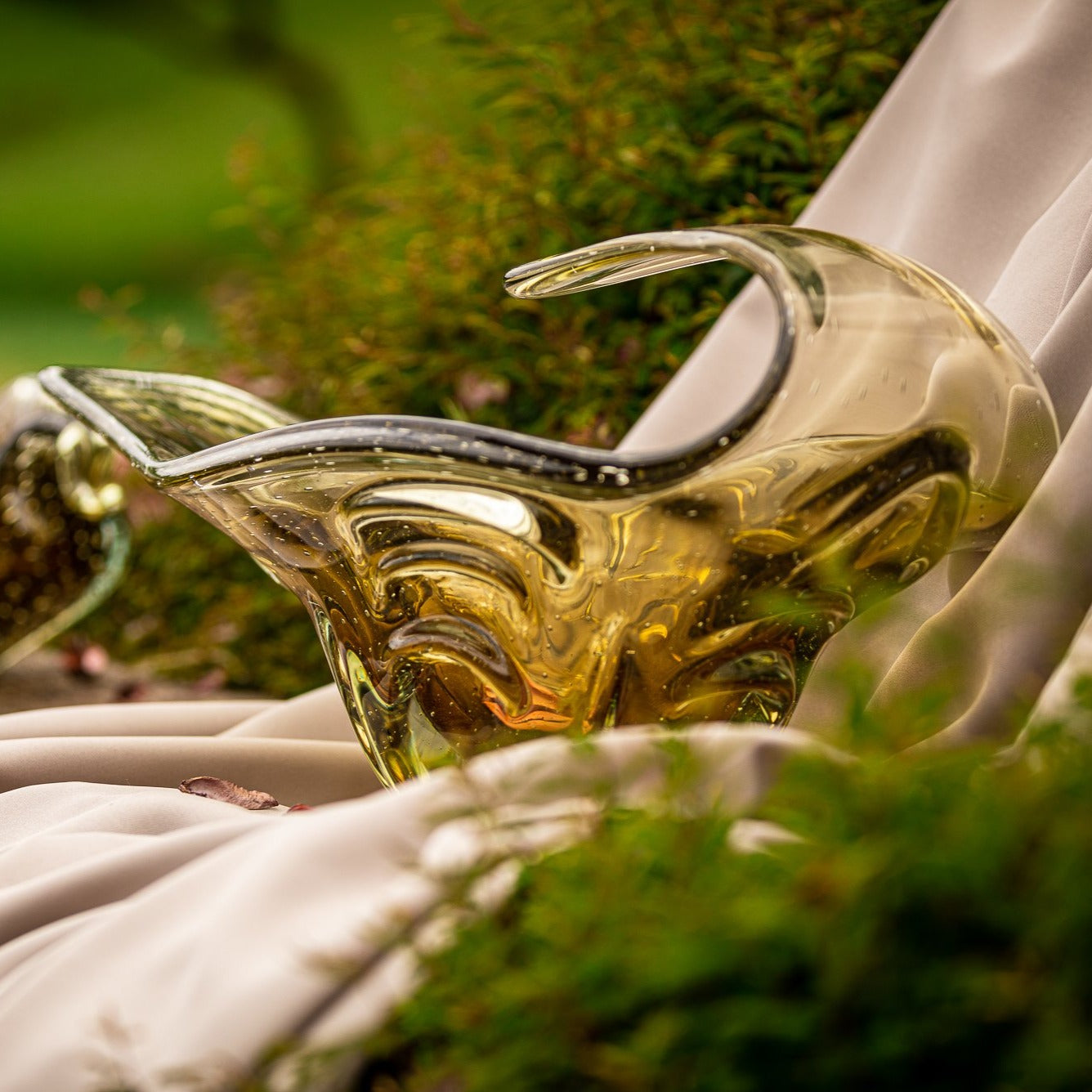 Murano Collection - Toda a beleza e a qualidade dos cristais feitos com a técnica de murano, a qual o vidro é moldado por meio do sopro e movimentos manuais, um processo artístico totalmente artesanal. Em tons ambar esverdeados com design e formatos contemporâneos, cheio de estilo e personalidade, eles vão trazer elegância e sofisticação para ambientes exclusivos e cheios de charme.
