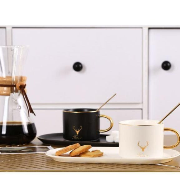 Além de elegante, sofisticado, em cores super clássicas e acabamentos em dourado esse jogo completo individual é momento ideal para um lanche com todo o charme que ssa louça oferece
