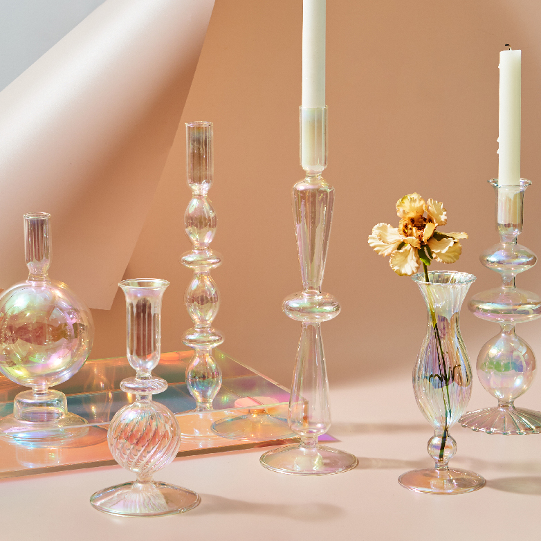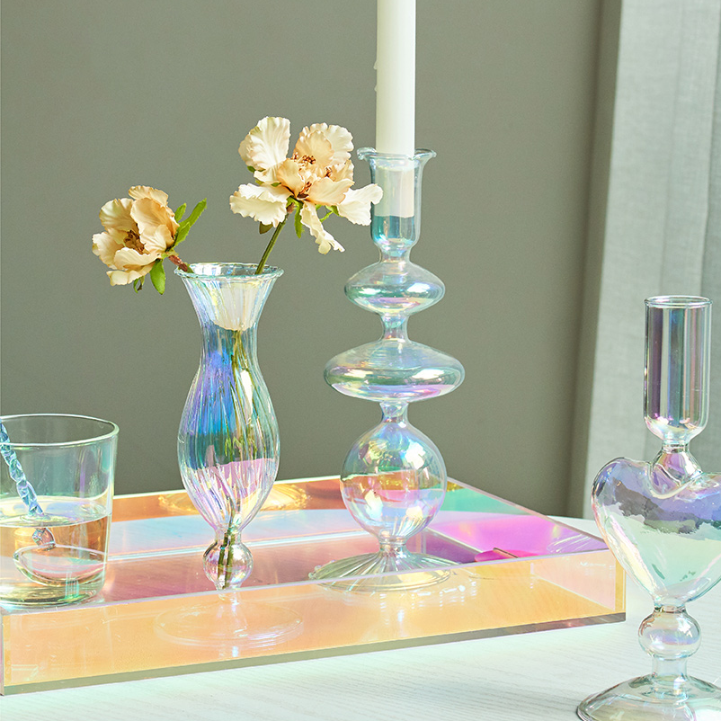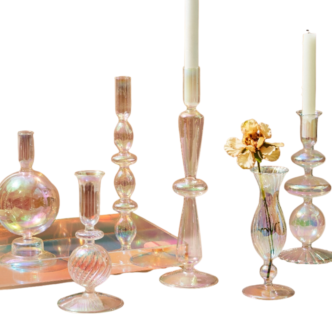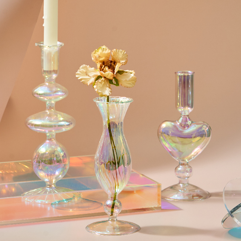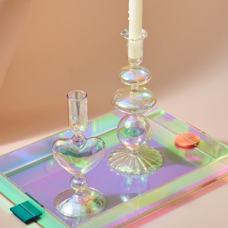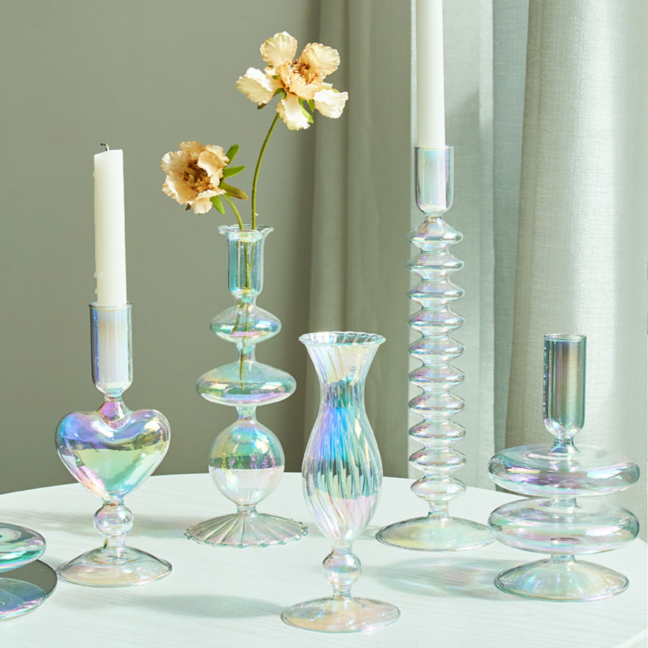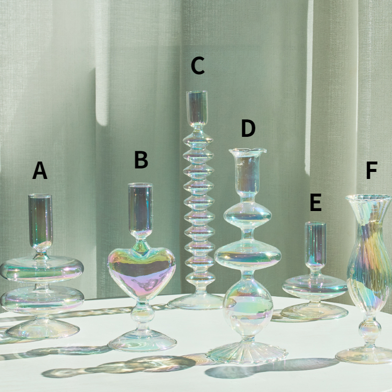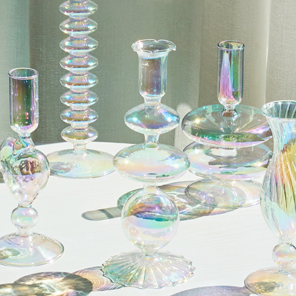 Feitos em vidro furtacor com formatos modernos e cheios de estilo e sensibilidade, os "Castiçais Rainbow" podem servir como suporte para velas ou flores e folhagens e vai trazer toda a delicadeza e charme que o seu ambiente e seus momentos merecem!