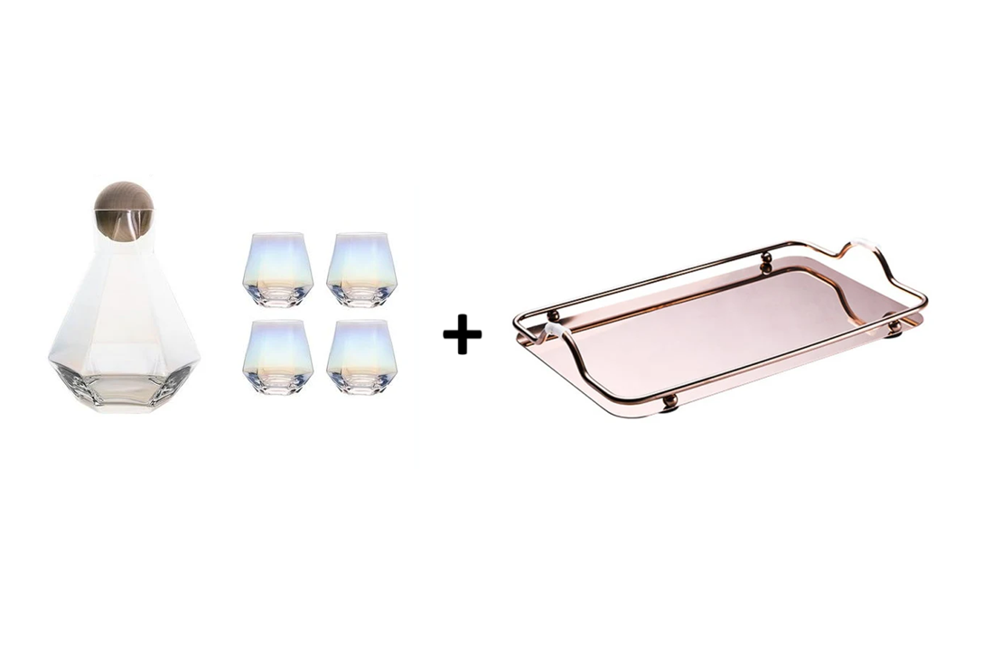 Kit Inclui: 6pcs - 1 Jarra + 4 Copos + 1 Bandeja espelhada