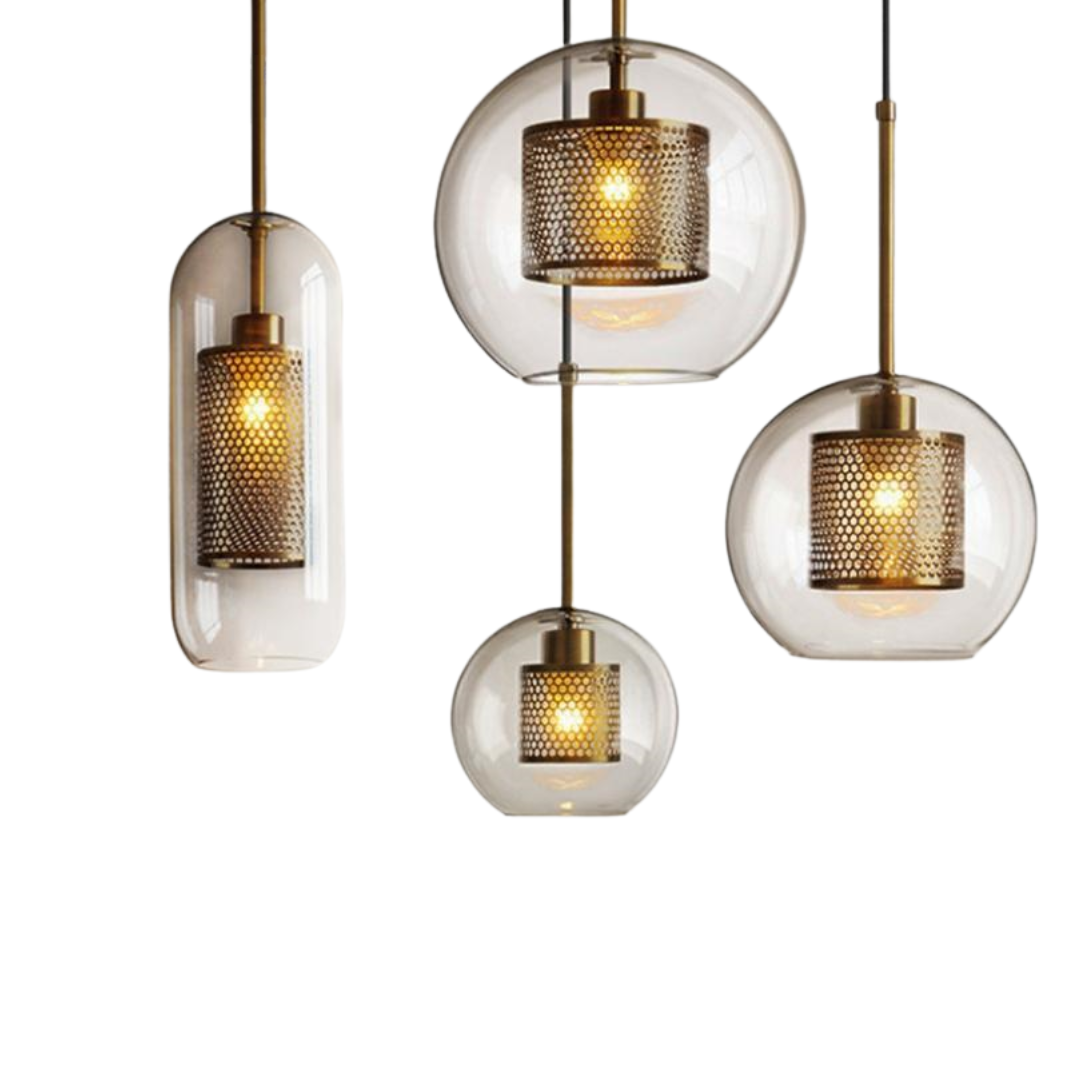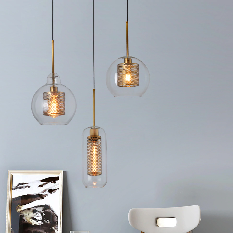 Os "Pendentes Iron" parecem a fórmula perfeita para um ambiente com mais estilo, aconchego sem deixar a elegância de lado. A mistura do metal em trabalho de grade e o vidro transparente, junto com o tom em dourado envelhecido trazem um design único, diferenciado e que vai deixar qualquer espaço mais cheio de personalidade!