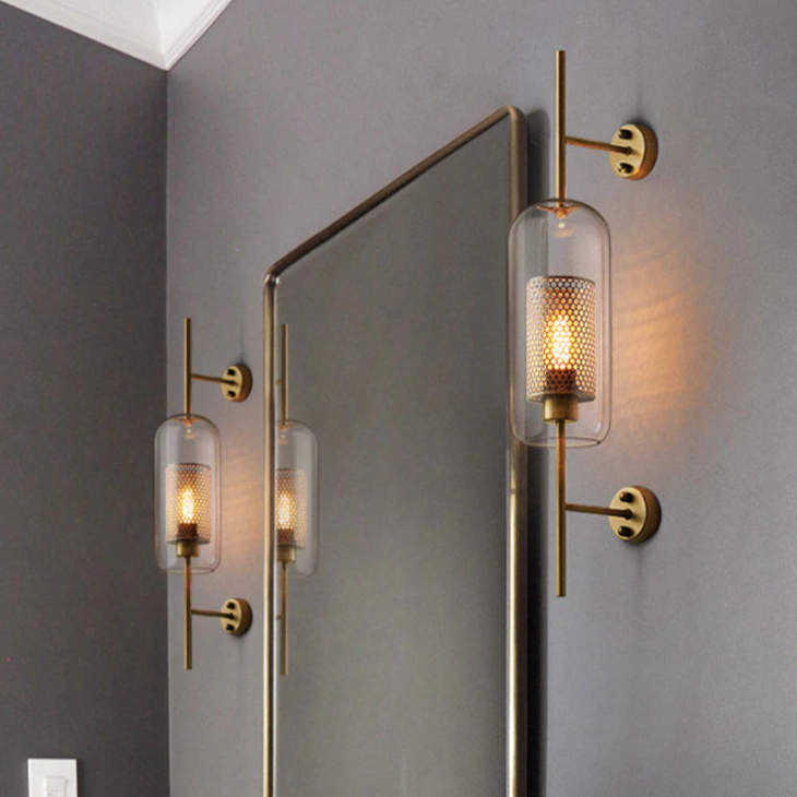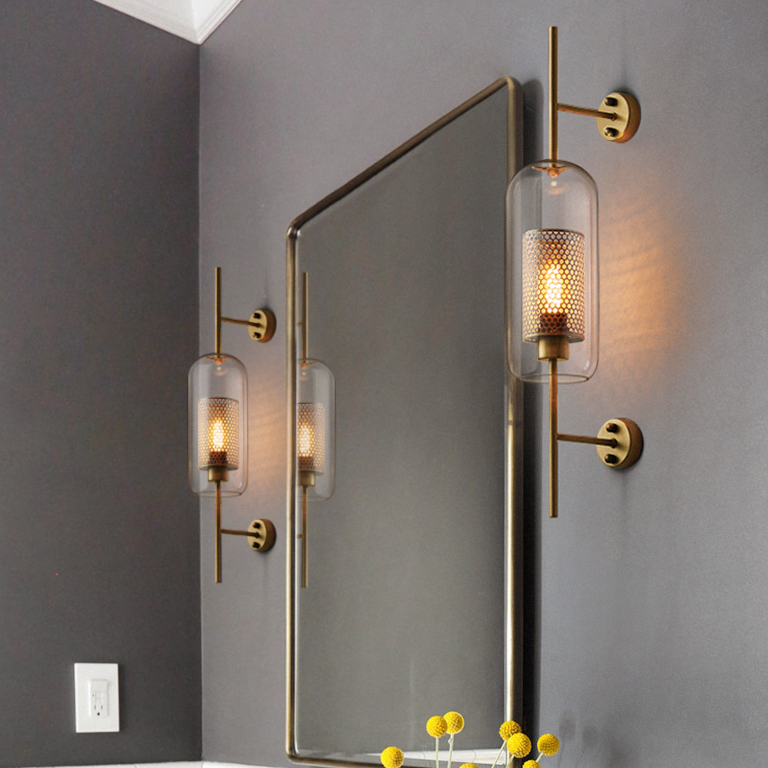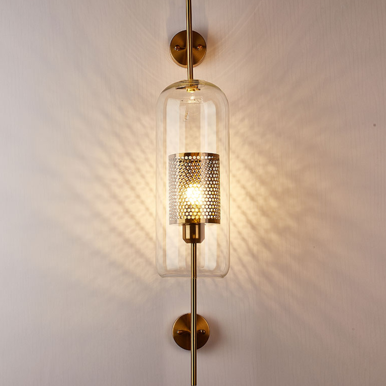 A "Arandela Iron" parece a fórmula perfeita par um ambiente com mais estilo, aconchego sem deixar a elegância de lado. A mistura do metal em trabalho de grade e o vidro transparente, junto com o tom em dourado envelhecido trazem um design único, diferenciado e que vai deixar qualquer espaço mais cheio de personalidade!