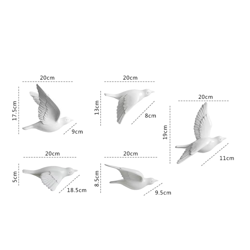 Encantadoras e cheias de estilo, as "Esculturas de parede Birds" trazem uma opção original e diferenciada para compor a decor das suas paredes saindo um pouco das tradicionais telas ou esculturas tradicionais. Feitas em resina em versões individuais ou jogo com 5 peças, vão deixar qualquer espaço com mais charme e delicadeza!