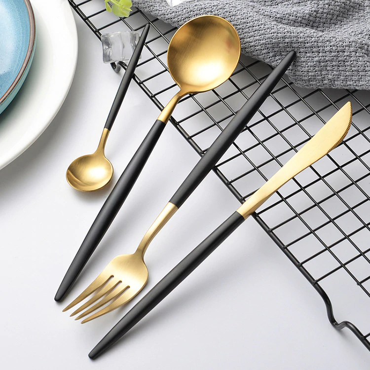 Com design europeu esse jogo de talheres é pura sofisticação e elegância. Metal de alta qualidade técnica de polimento fosco anti-corrosão, e o cabo em opções de cores que vão deixar cada refeição inesquecível e muito mais alegre!