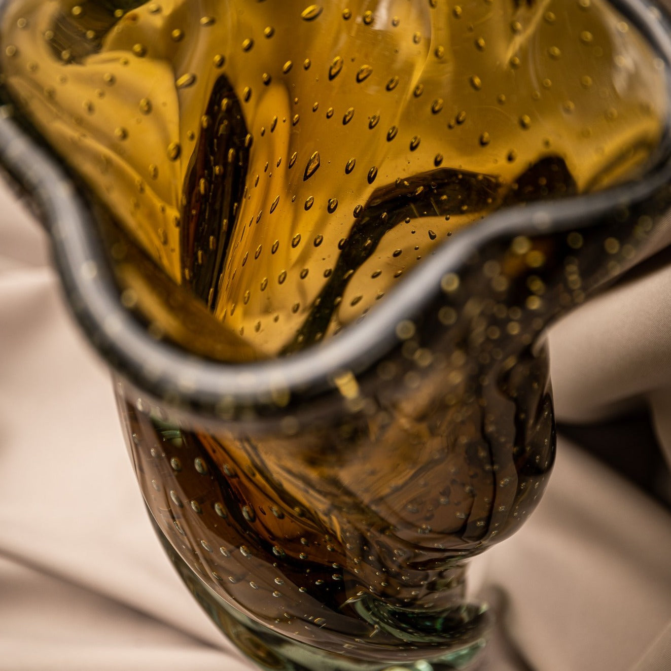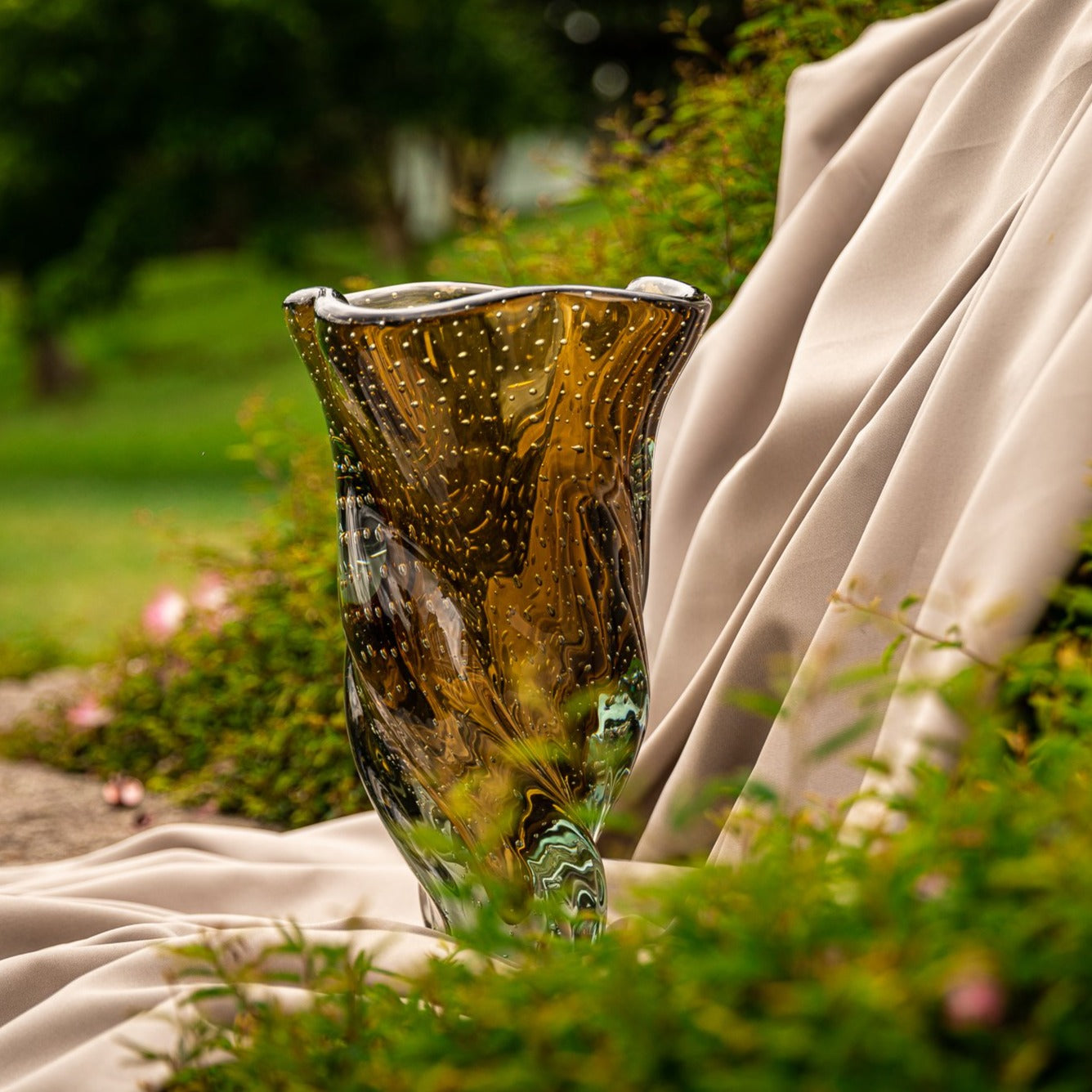 Murano Collection - Toda a beleza e a qualidade dos cristais feitos com a técnica de murano, a qual o vidro é moldado por meio do sopro e movimentos manuais, um processo artístico totalmente artesanal. Em tons ambar esverdeados com design e formatos contemporâneos, cheio de estilo e personalidade, eles vão trazer elegância e sofisticação para ambientes exclusivos e cheios de charme.