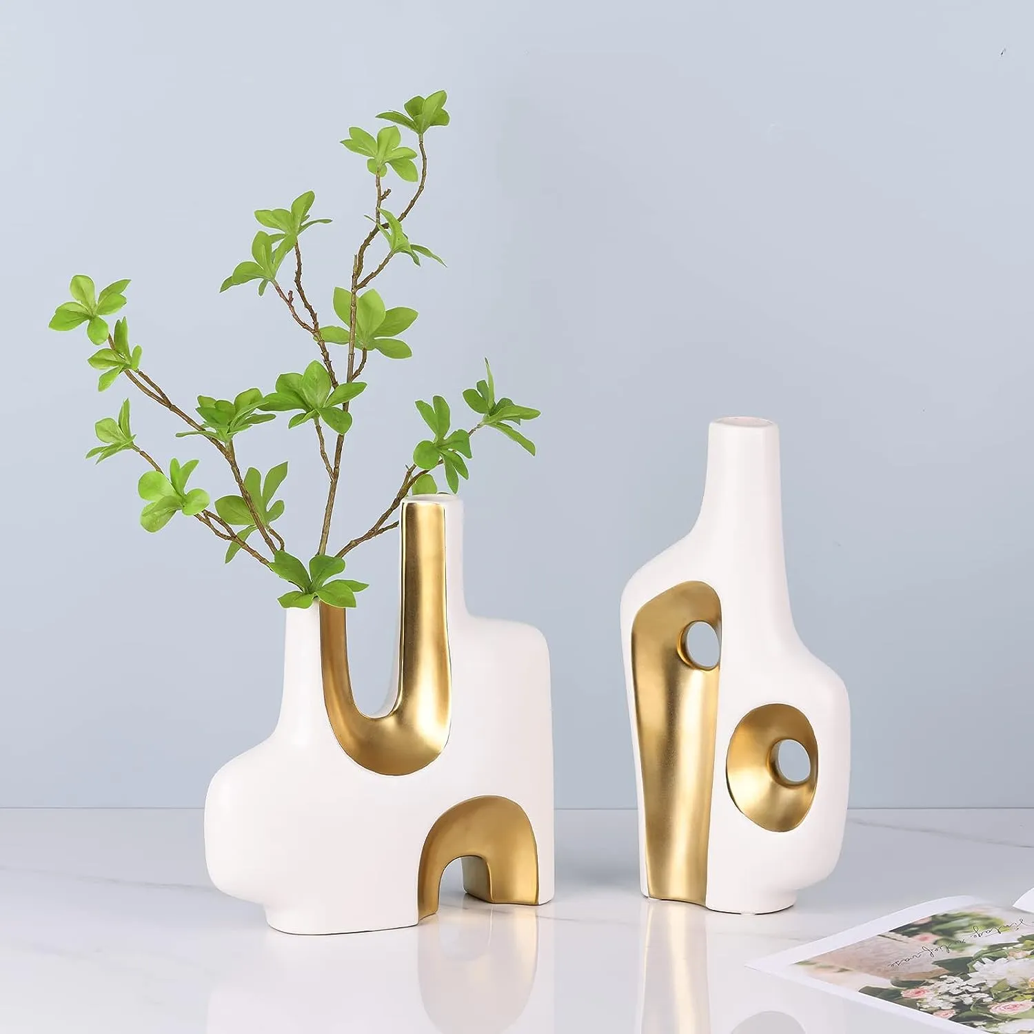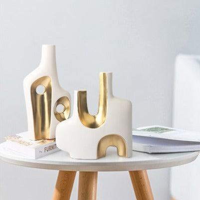 Os "Vasos Mahoganny" trazem o design moderno através da assimetria das formas, feitos em cerâmica artesanal acetinada e detalhes em dourado ou preto, vão te ajudar a criar composições sofisticadas para trazer a modernidade, personalidade e originalidade que você e seu ambiente merecem!